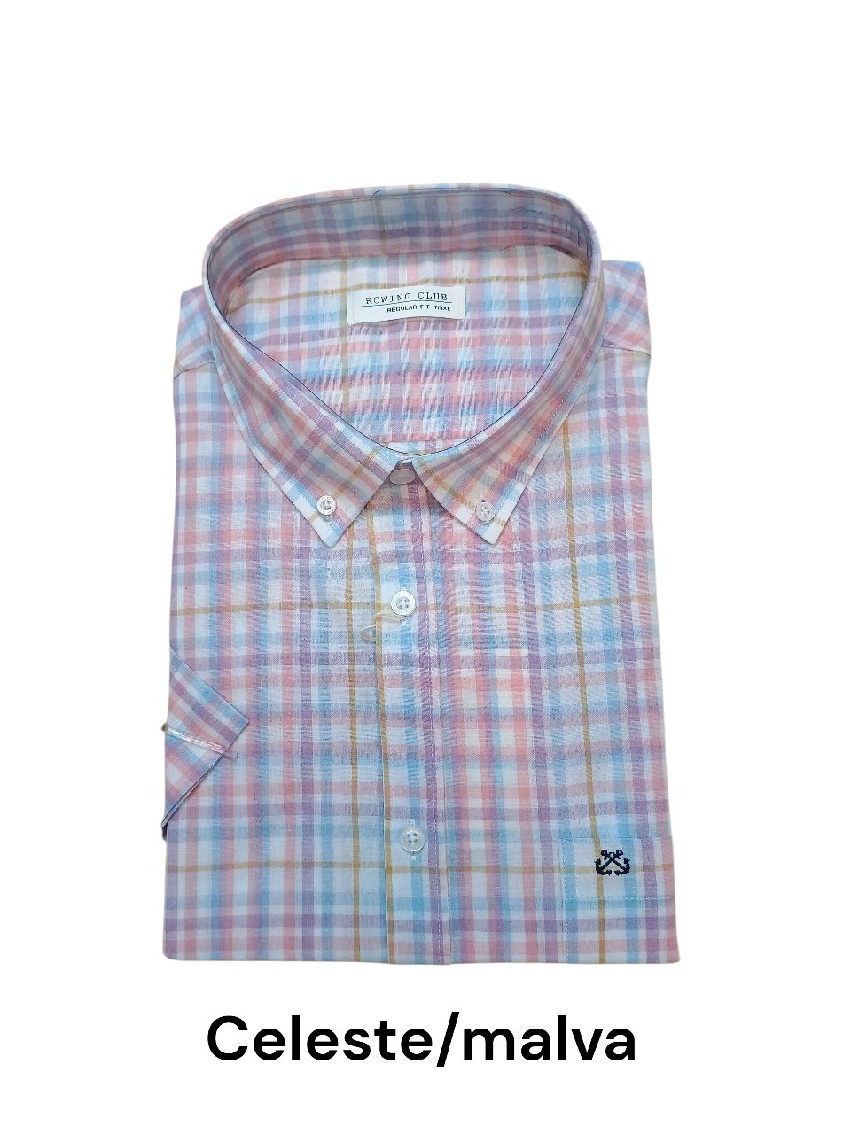 Camisas de hombre manga corta 100% algodón. Para los más exigentes les ofrecemos un clasicismo muy actual que juega con los tonos pasteles . Se confeccionan en un fino y suave tejido que hará las delicias de los más caluroso. 100% transpirable, una bonita caída para unos cuadros en celeste con malva; rojo con amarillo; y marino con verde que podrás combinar con tus pantalones favoritos.