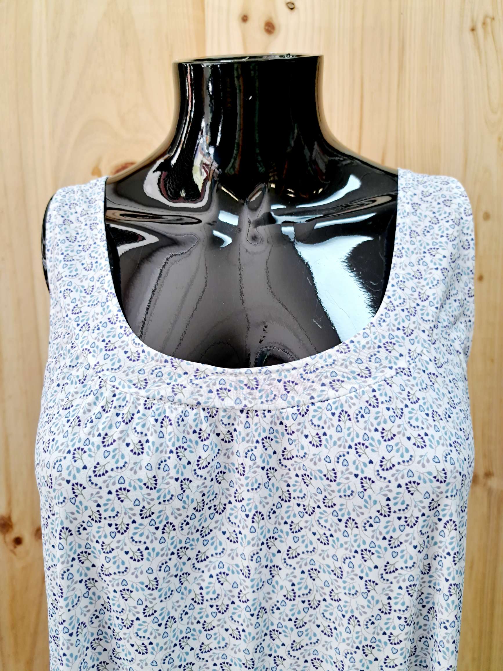 camisón hombrera poliamida hipoalergénico. Confeccionado en 100% poliamida.Para todo tipo de pieles.Especial para pieles sensibles y delicadas. No irrita la piel ni produce alergias.Suave al tacto.Un tejido fresco y ligero. Indicado para esas noches de extremo calor. El camisón mujer punto de seda está diseñado en blanco con florecitas azules. Un estampado clásico. Que nunca pasa de moda.El camisón hombrera poliamida lo puedes poner muy fácilmente porque tiene abertura con 3 botones. Y así no te vas a despeinar. Y si te cuesta mover los brazos. o te cuesta mover los hombros este es tu camisón!! Porque se abre fácilmente. Como es de punto de seda,resbala. No se te quedará pegado al cuerpo.Con una hombrera fruncida para que no nos moleste.. Y así podemos dormir fresquitas y cómodas.Porque después de un día de mucho calor,lo que más apetece es darse una buena ducha. y ponerse fresquita. Con prendas sueltas y frescas.Por eso,este es tu camisón!!! Una prenda que resiste lavados hasta 60º grados. Y es de secado rápido. Y lo mejor de todo,¡¡¡no necesita plancha!!! Una buena noticia para todos nosotros. Sobre todo cuando suben los grados en nuestos hogares. Y puedes completar tu compra con la bata de manga corta abotonada de tejido ligero. Porque cuando nos levantamos por la mañana,nos gusta ponernos algo por encima mientras desayunamos. O por si llaman a la puerta. con este conjunto estarás ideal.O con el camisón de manga corta poliamida. Y también si te vas de viaje. Son prendas que no ocupan nada en la maleta. Y son prácticas,cómodas,y muy coquetas. Aunque tengamos unos años,a todas nos encanta sentirnos femeninas. Y tienes estas opciones sin salir de nuestra página web. Y todo es de Findel. Hecho en ESPAÑA.Un camisón estupendo a un precio increíble!!! Por solo 33,50euros!!!