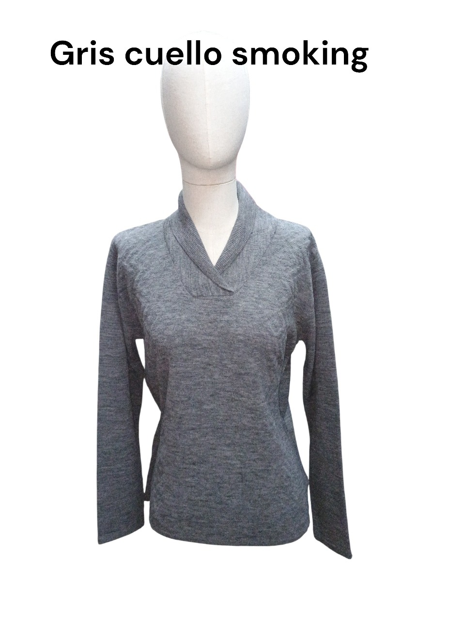 Jersey cuello smoking también válido para lavar a altas temperaturas.
